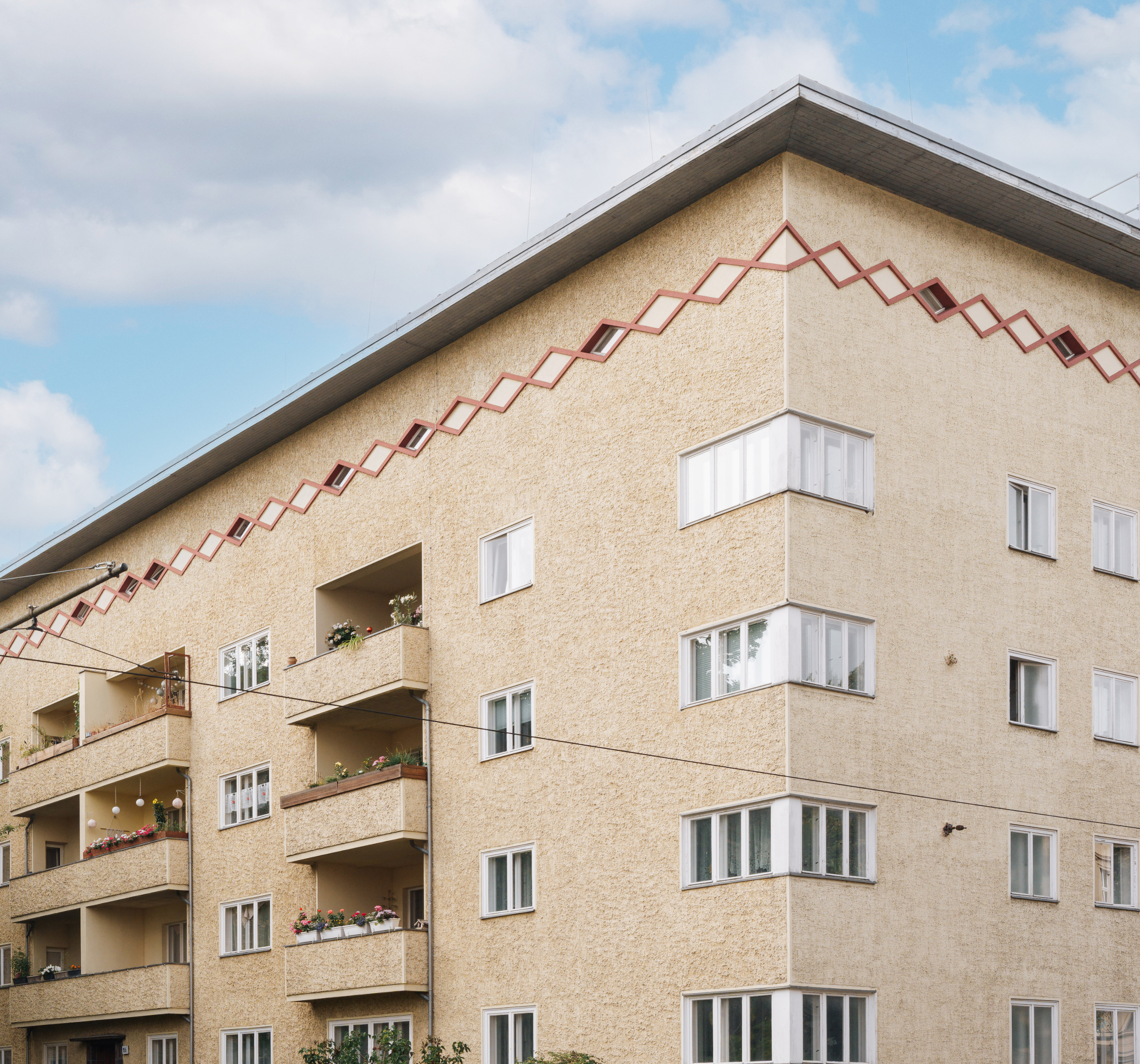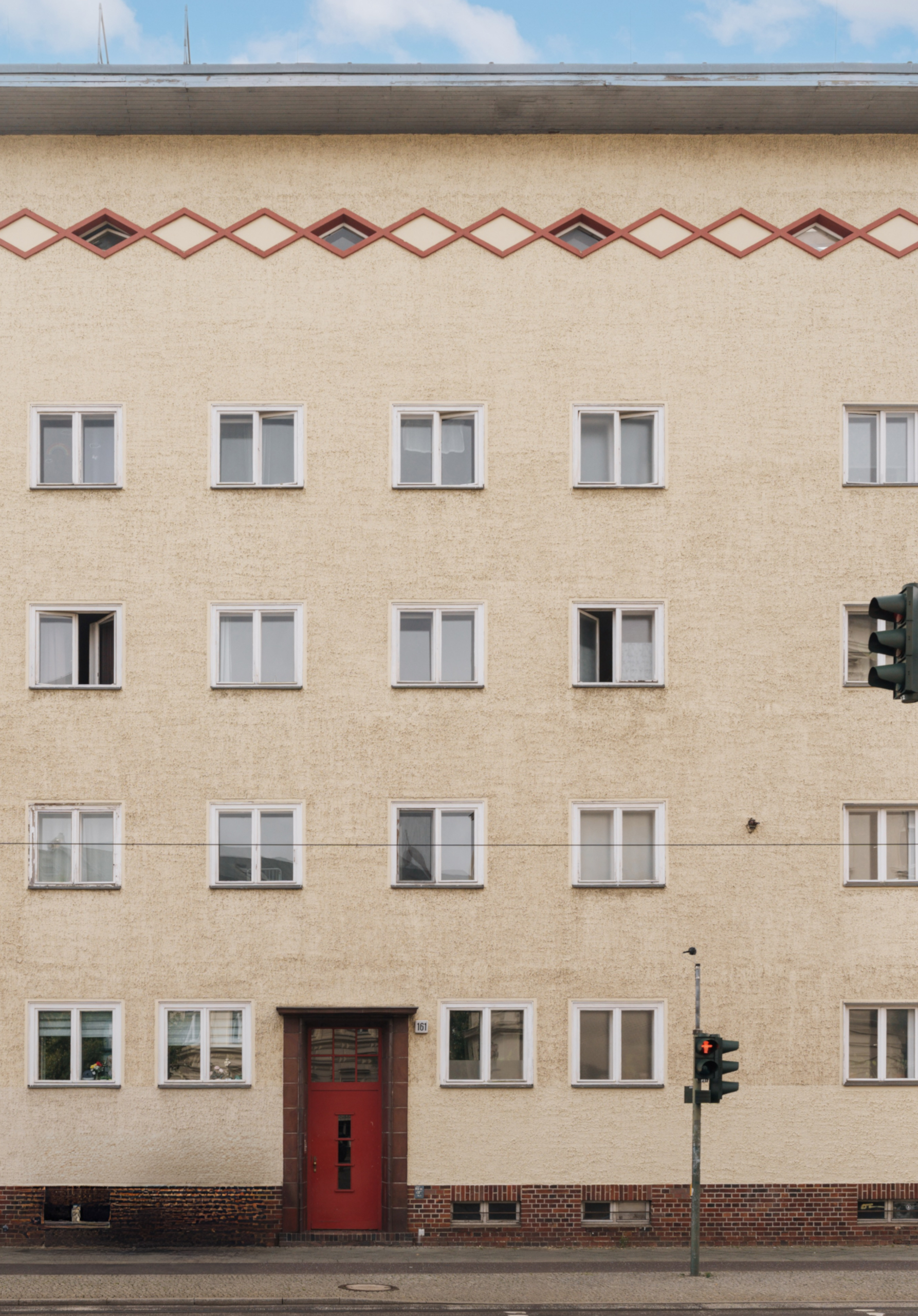 Das Ensemble Zeppelinstraße bildet einen architektonisch klar gegliederten Block mit starker Präsenz im Straßenbild. Errichtet vermutlich in den 1920er Jahren – spiegelt es den Baustil seiner Zeit wider: funktional, robust und dennoch mit gestalterischem Anspruch. Die gleichmäßige Fassadengliederung, großzügigen Fensterachsen und klaren Baukörper sind typisch für den Übergang von der Gründerzeitarchitektur zu einer sachlicheren Moderne.